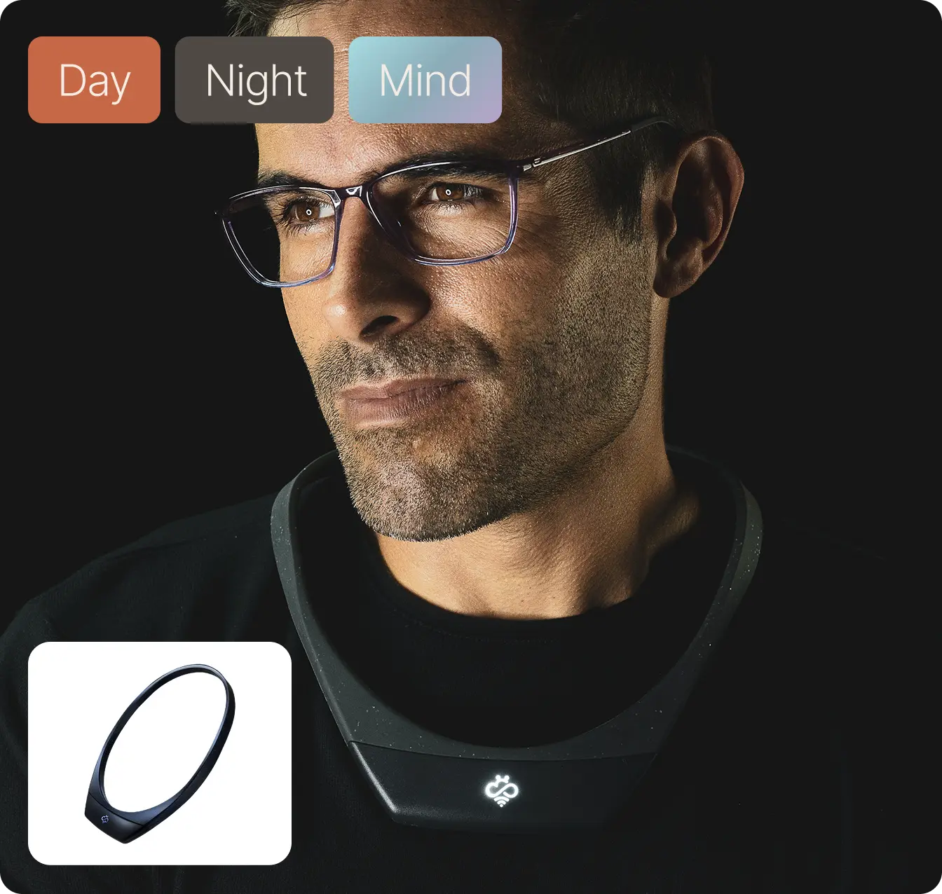 Neckband: For all day, energy, focus, calm and sleep. Wear during work, workouts, or travel or pop it under your pillow for sleep.